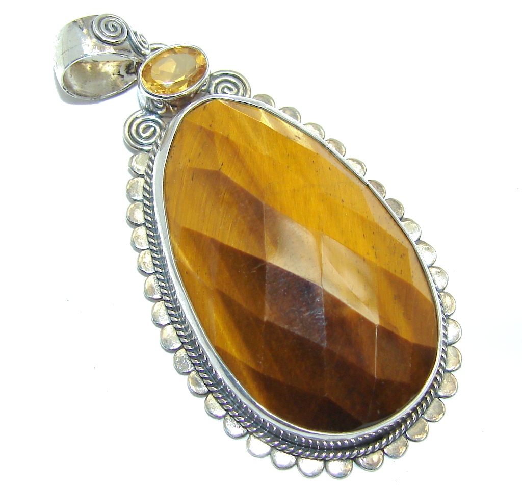 Simple Brown Tigers Eye Sterling Silver Pendant