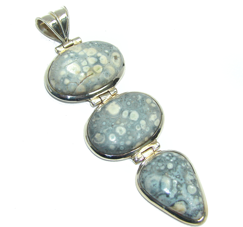 Grey Marbled Jasper Stone Sterling Silver Pendant