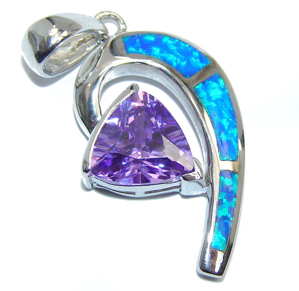 Luxurious Purple Cubic Ziconia Fire Opal Sterling Silver Pendant