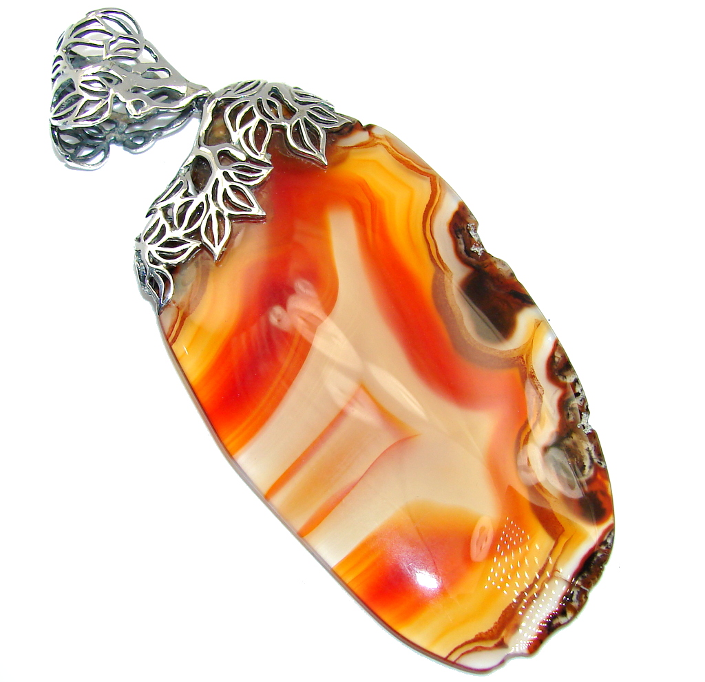 Perfect Orange Island Botswana Agate Sterling Silver Pendant