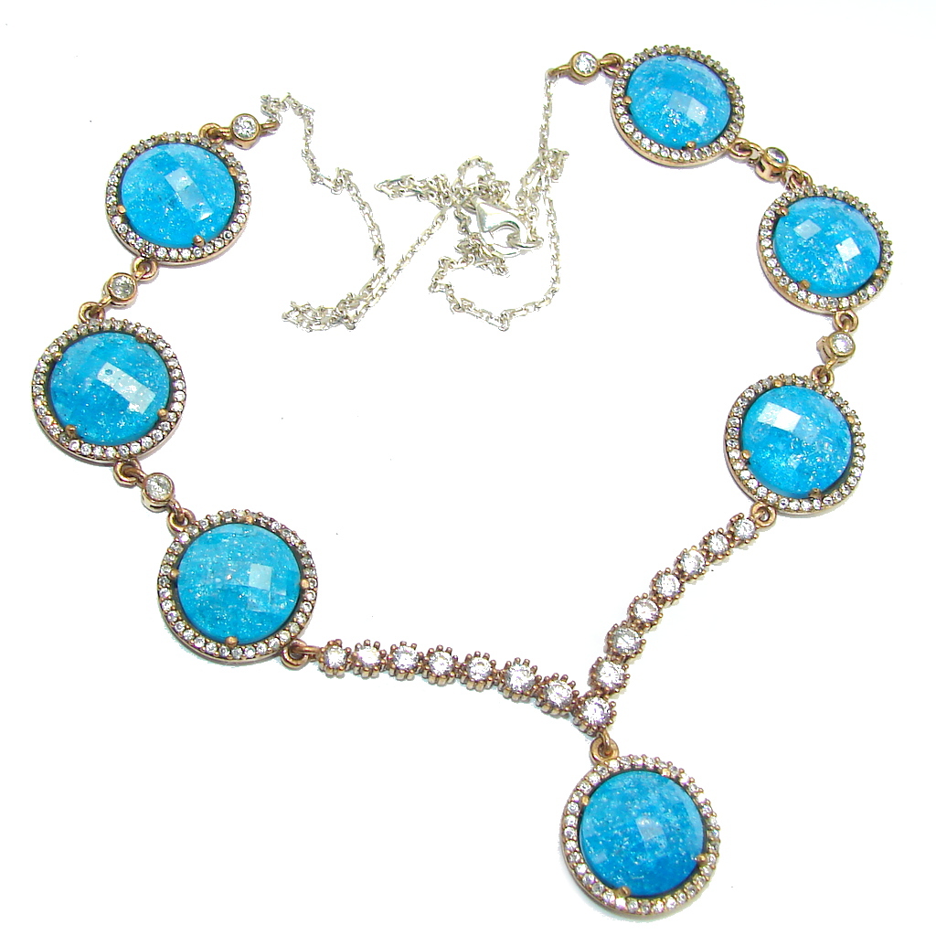 Huge Incredible Rich Design created Blue Crystals Sterling Silver necklace