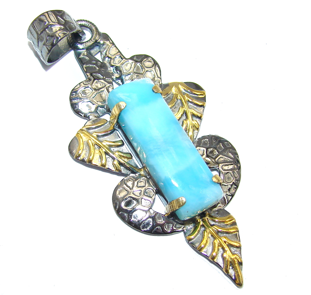 Genuine Blue Larimar Gold Rhodium plated Sterling Silver Pendant