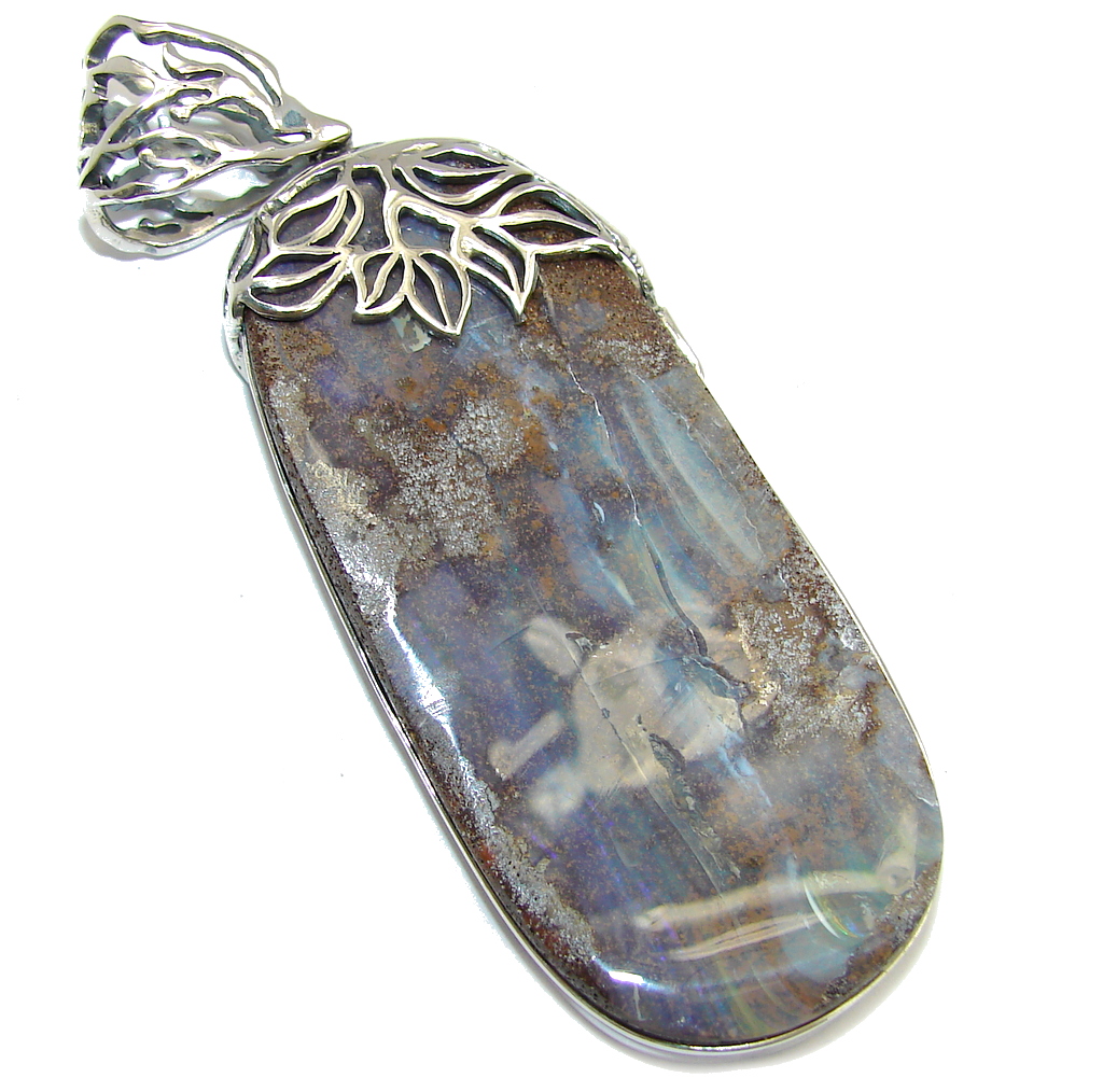 Beautiful Natural Australian Boulder Opal Sterling Silver Pendant