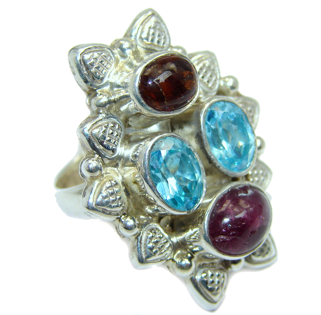 Tourmaline Swiss Blue Topaz Sterling Silver Ring s. 6 1/2