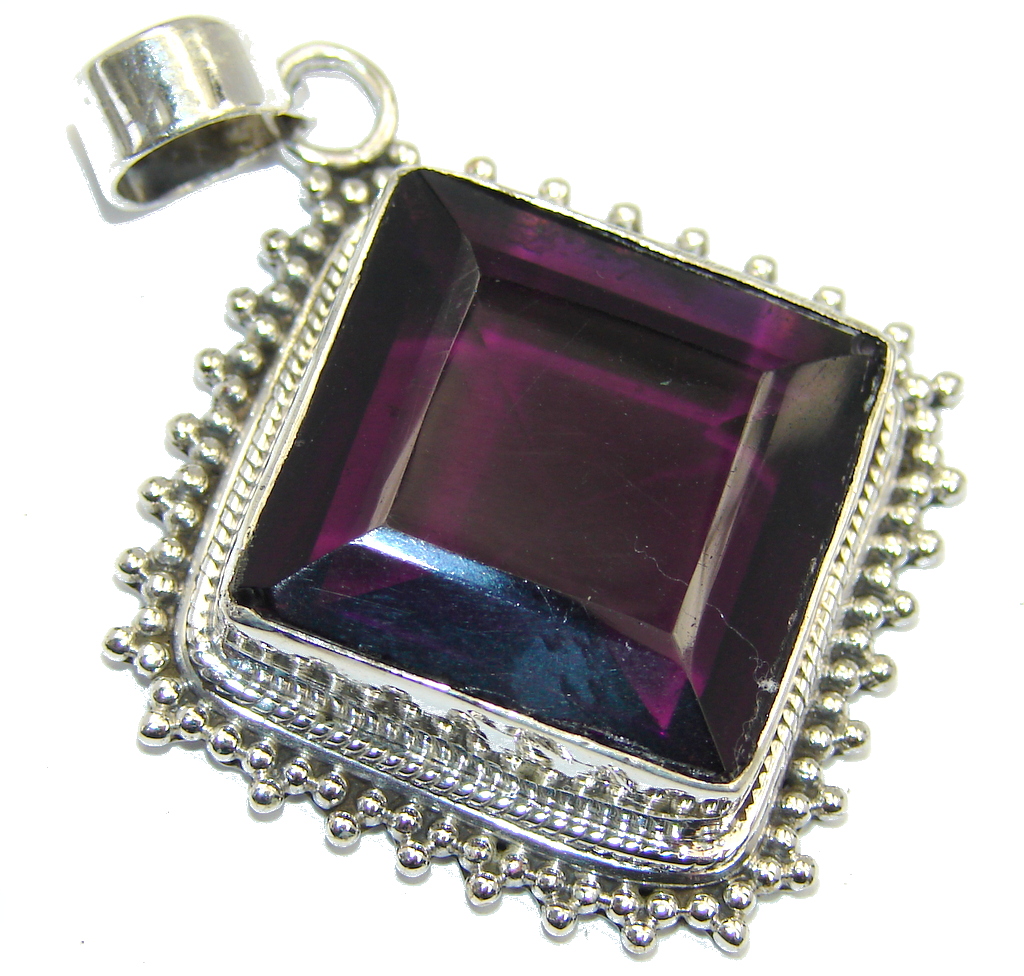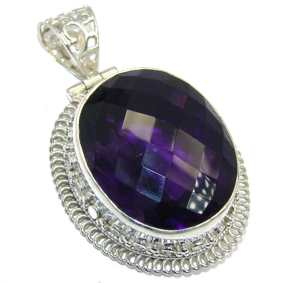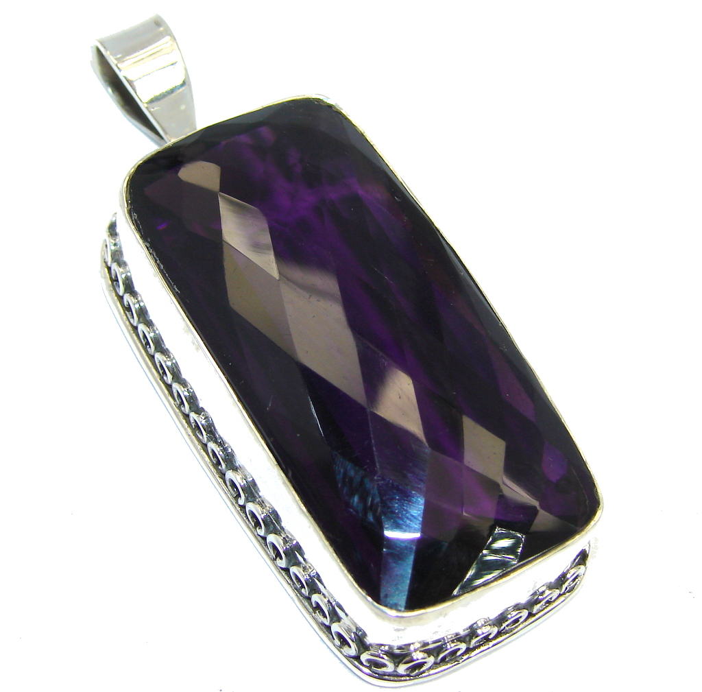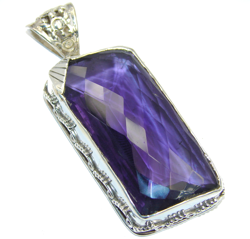 Large Simple created Purple Quartz Sterling Silver Pendant