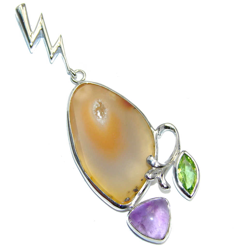 Huge! Fashion Brown Agate Sterling Silver Pendant