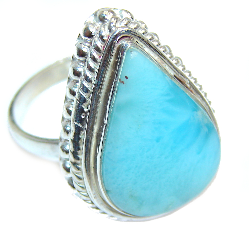 Genuine AAA Blue Larimar Sterling Silver Ring s. 8 3/4