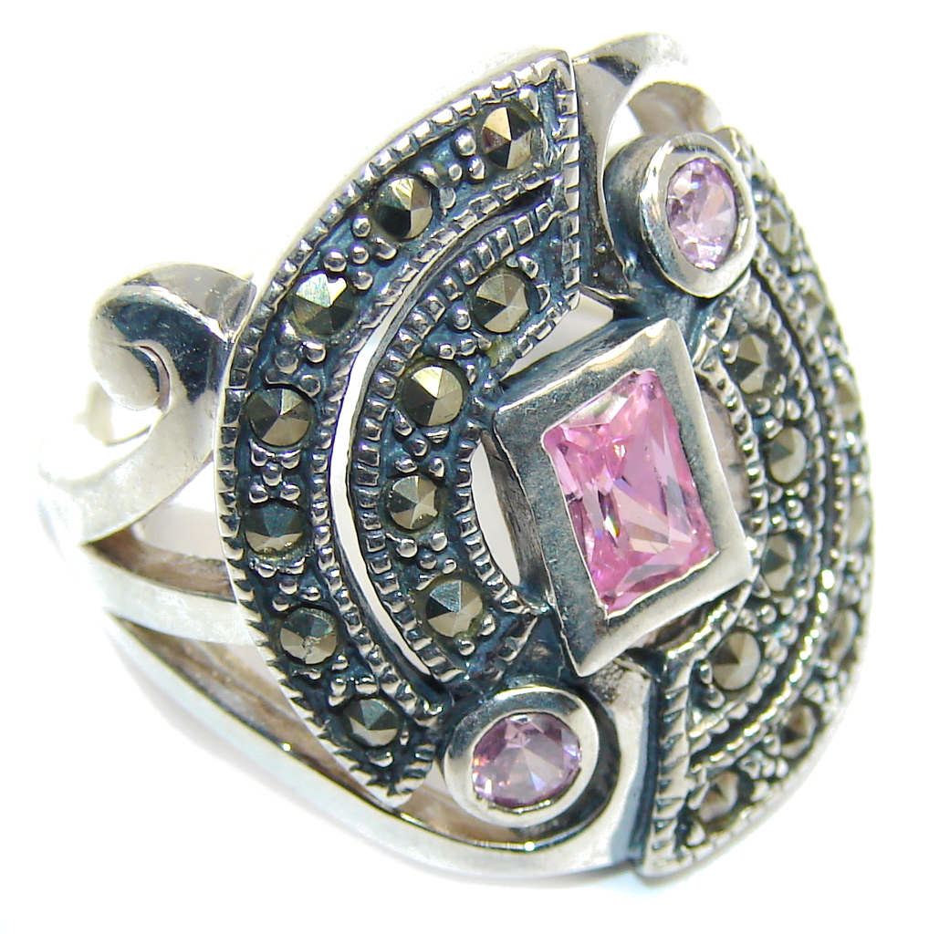 Pink Cubic Zirconia & Marcasite Sterling Silver Ring s. 6