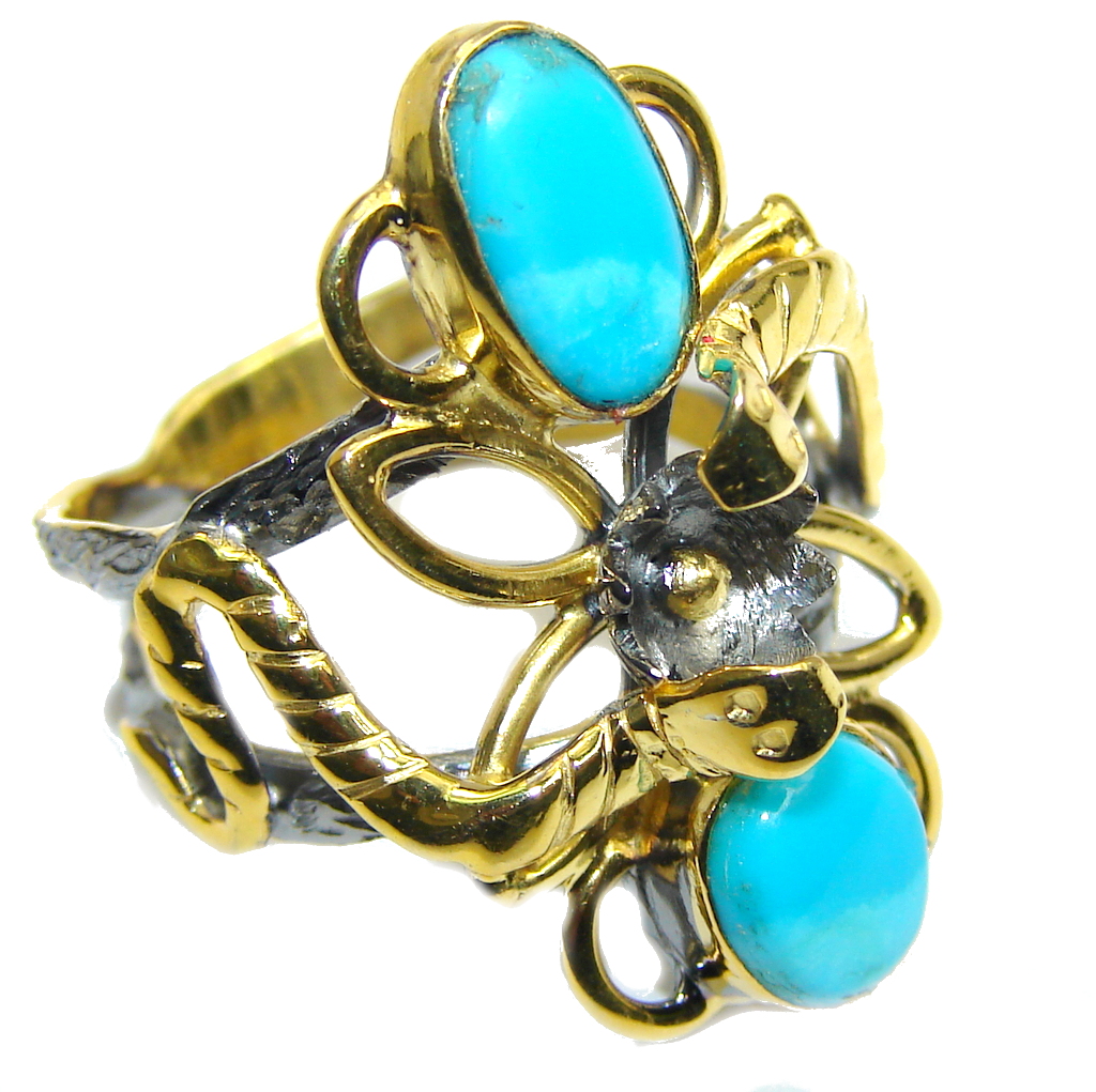 Sleeping Beauty Blue Turquoise, Rose Gold Plated, Rhodium Plated Sterling Silver Ring s. 7