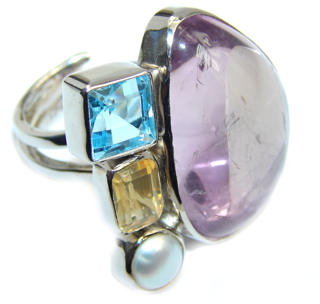 Exotic Pink Amethyst Sterling Silver ring s. 7- adjustable