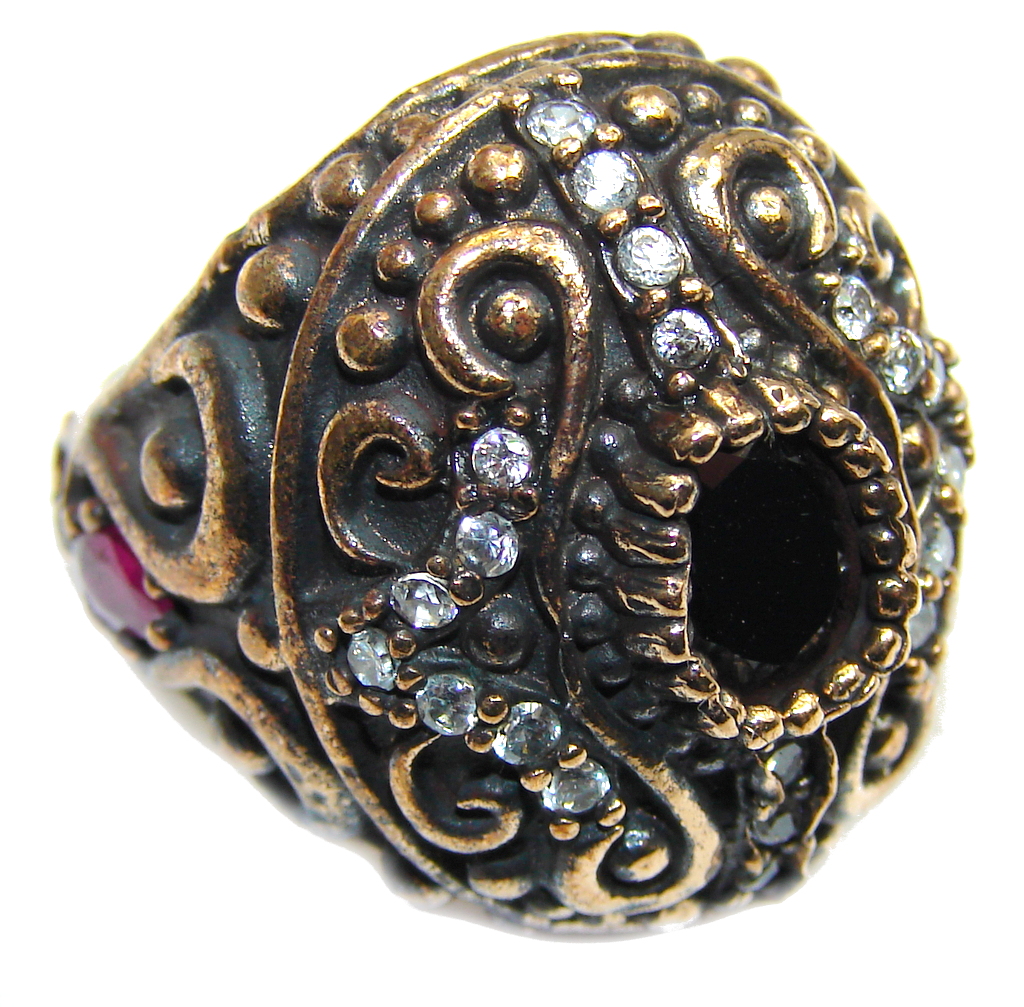 Victorian Style Onyx White Topaz Sterling Silver ring; s. 6 1/4