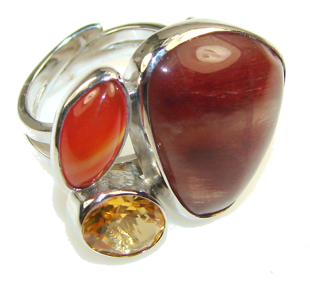 New Design!! Carnelian Sterling Silver ring s. 7 - Adjustable