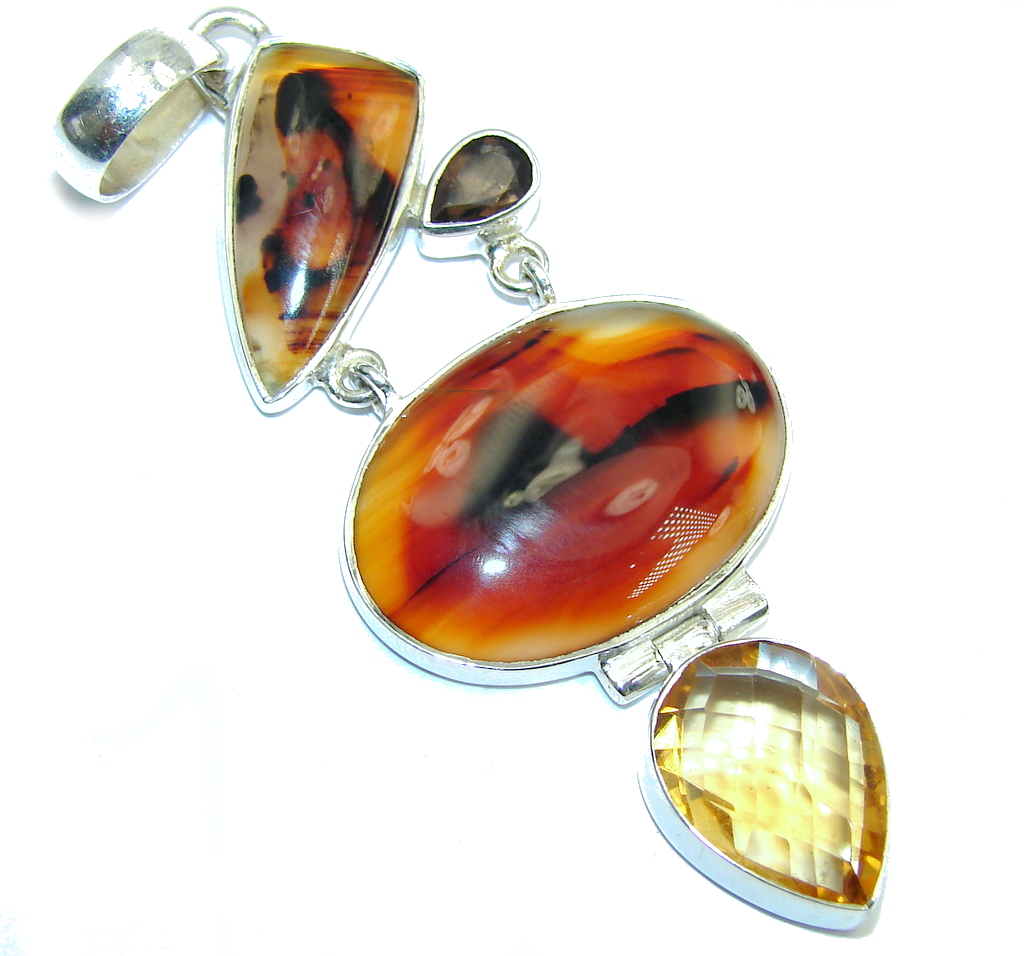 Big! Secret Brown Scentic Agate Sterling Silver Pendant