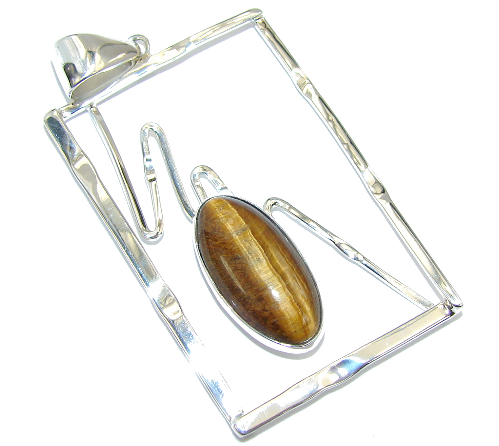Delicate Brown Tigers Eye Sterling Silver Pendant