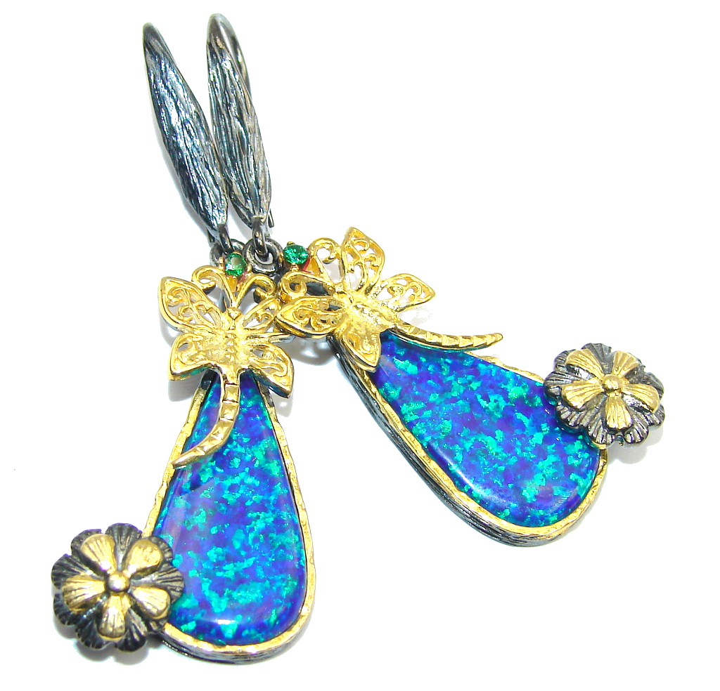 Exclusive Blue Fire Opal, Gold Plated, Rhodium Plated Sterling Silver earrings / Long