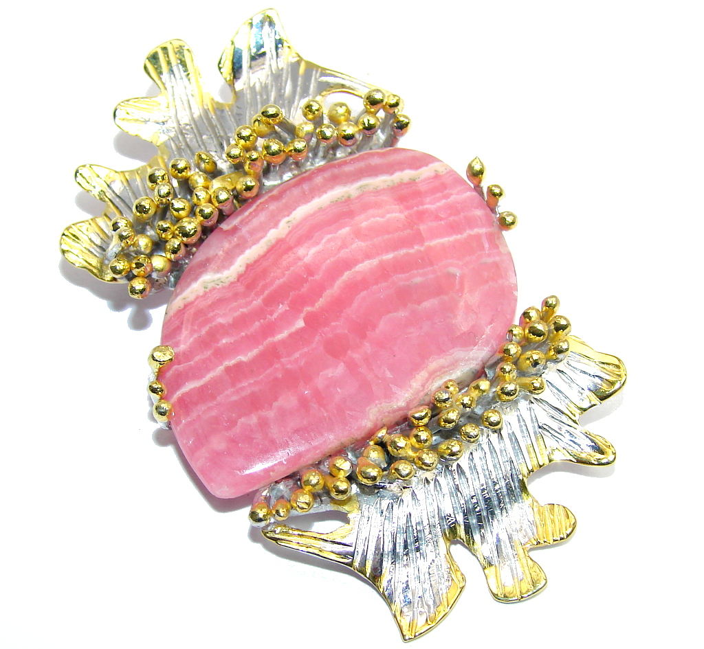 Bali Style! Pink Rhodochrosite, Two Tones Sterling Silver Pendant