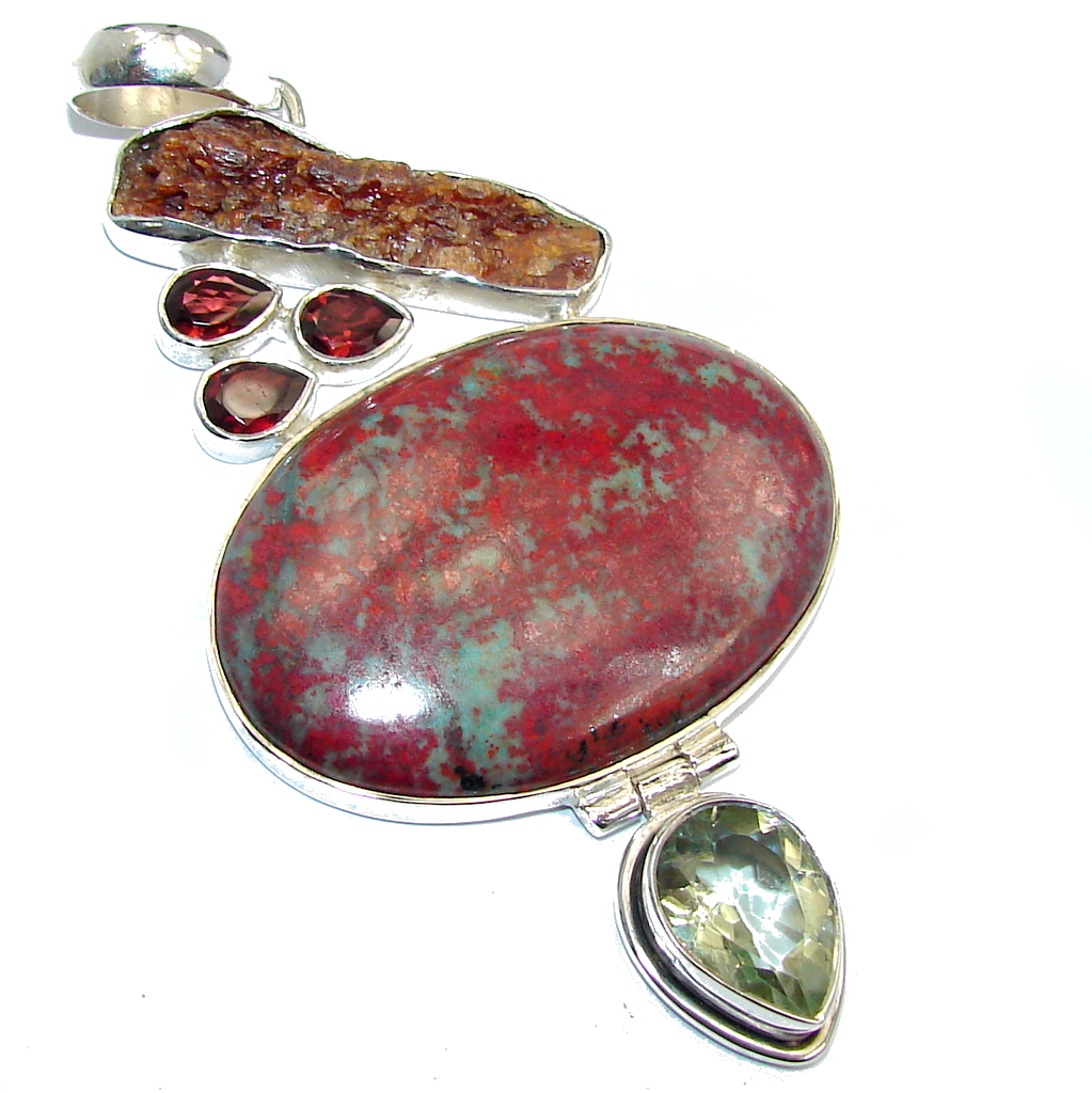Big! Fashion Red Sonora Jasper Sterling Silver Pendant