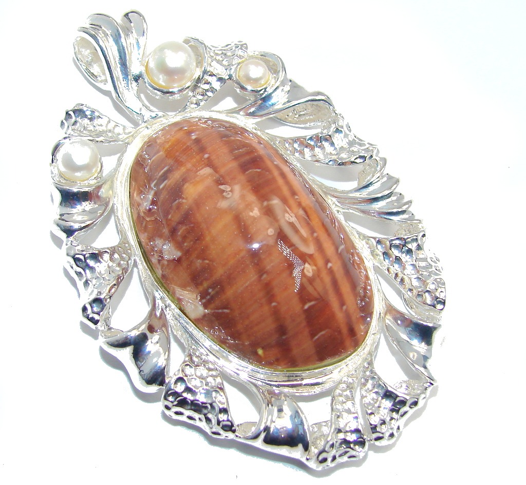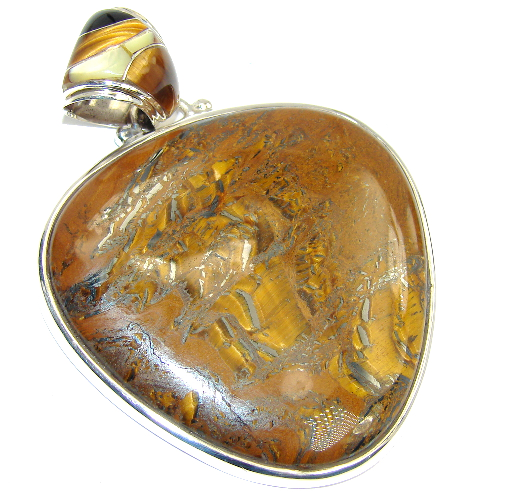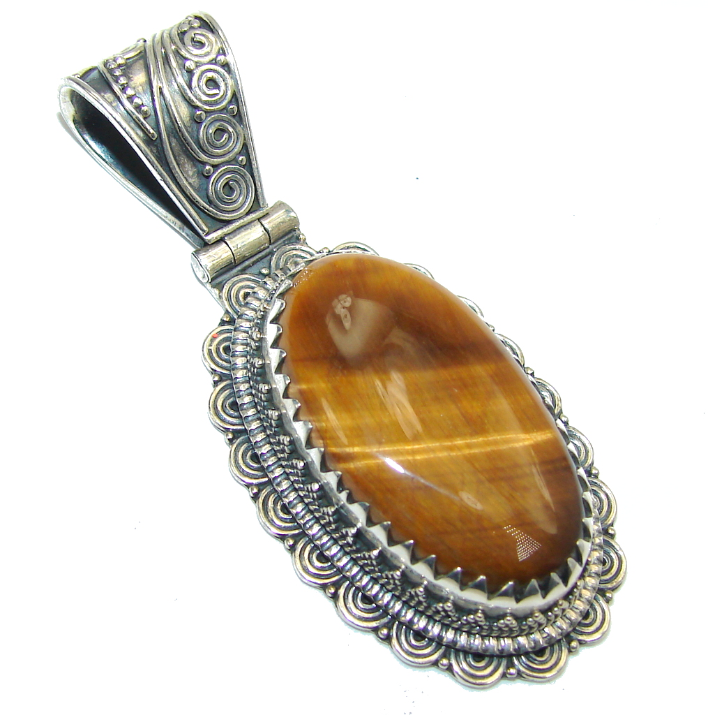 Big! Awesome AAA Brown Tigers Eye Sterling Silver Pendant