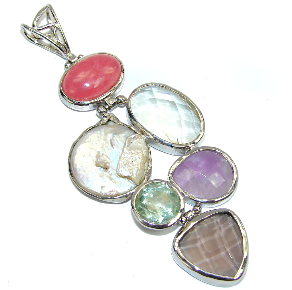 Big! Pale Beauty Pink Rhodochrosite Sterling Silver Pendant
