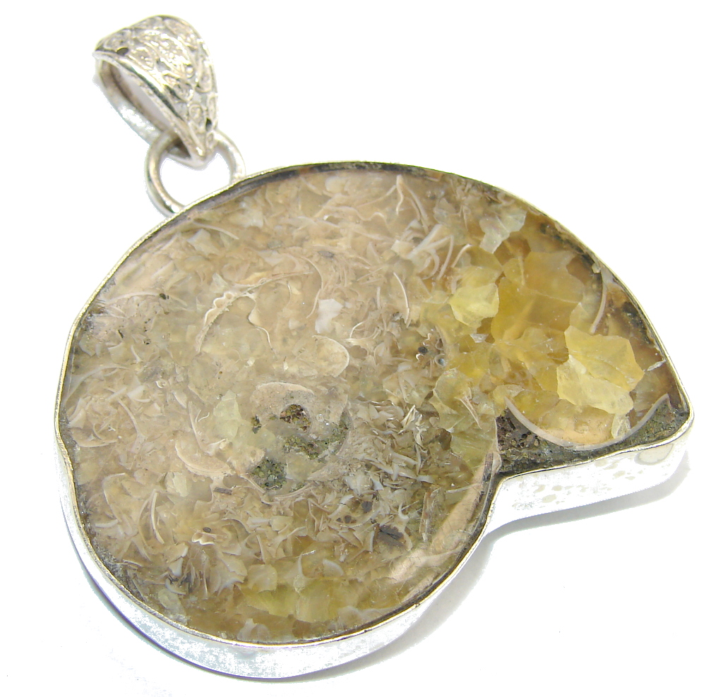 Classic Brown Ammonite Fossil Sterling Silver Pendant