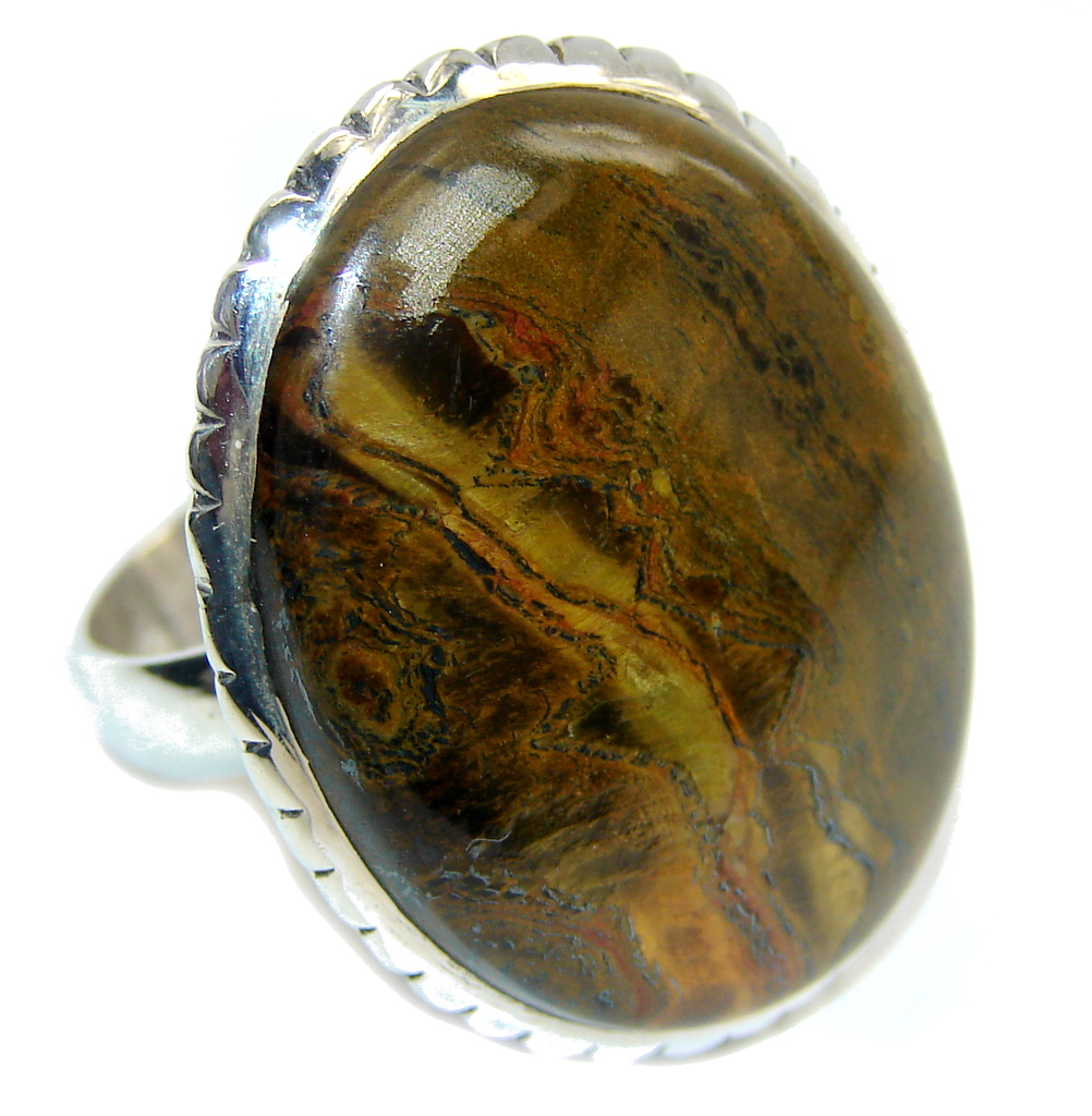 Big! Secret Brown Tigers Eye Sterling Silver ring s. 6