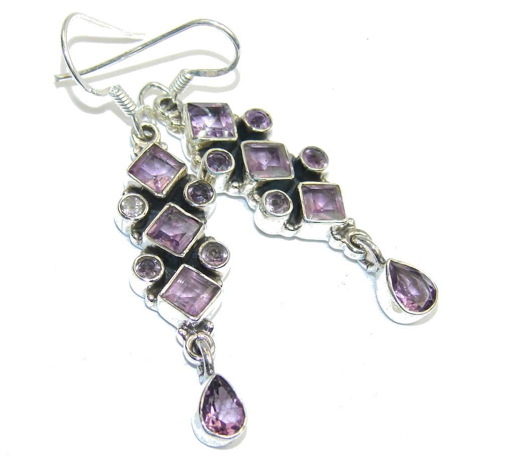 Delicate Long Purple Amethyst Sterling Silver earrings