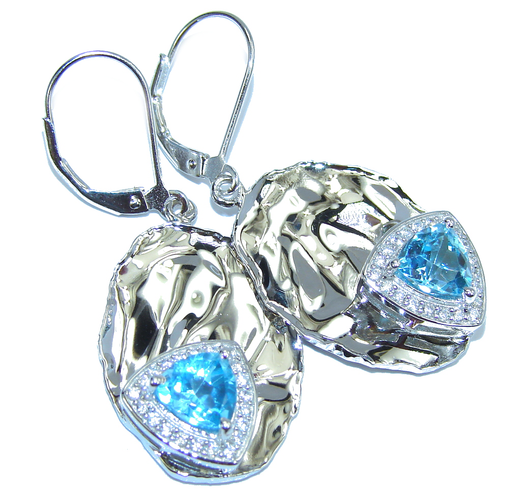 Ocean Breeze! AAA Swiss Blue Topaz & White Topaz Sterling Silver earrings