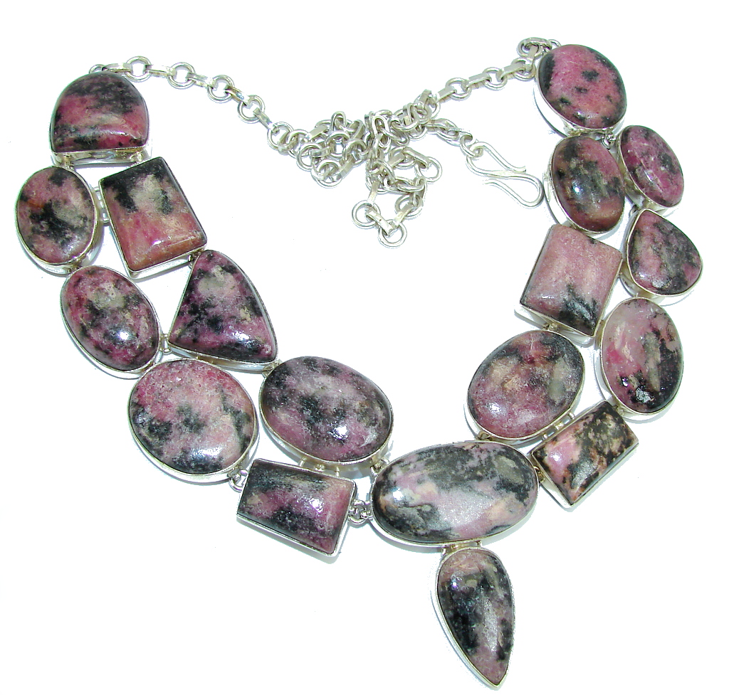 Huge! Pale Beauty Pink Rasberry Rhodonite Sterling Silver necklace