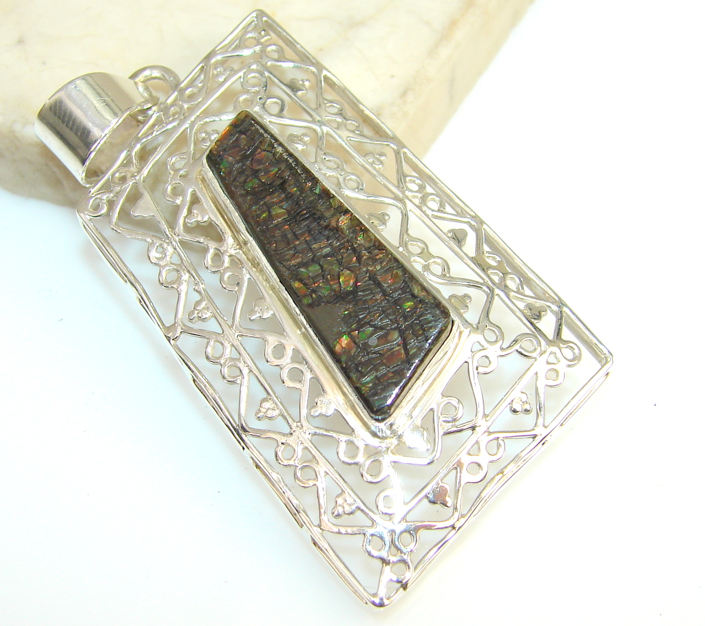 Dazzling Ammolite Fossil Sterling Silver Pendant