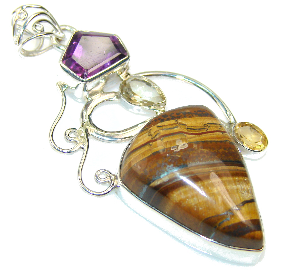 Precious Tigers Eye Sterling Silver Pendant