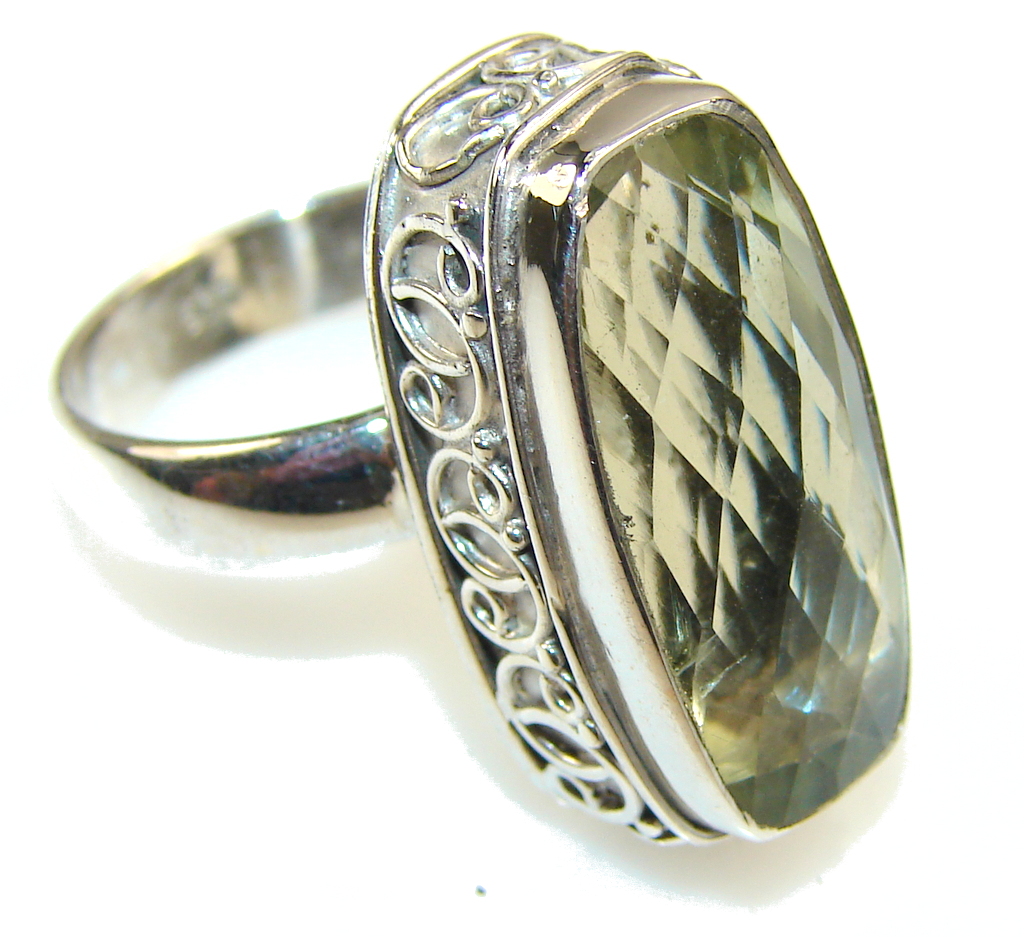 Vintage Style Green Amethyst Sterling Silver Ring s. 7 1/2