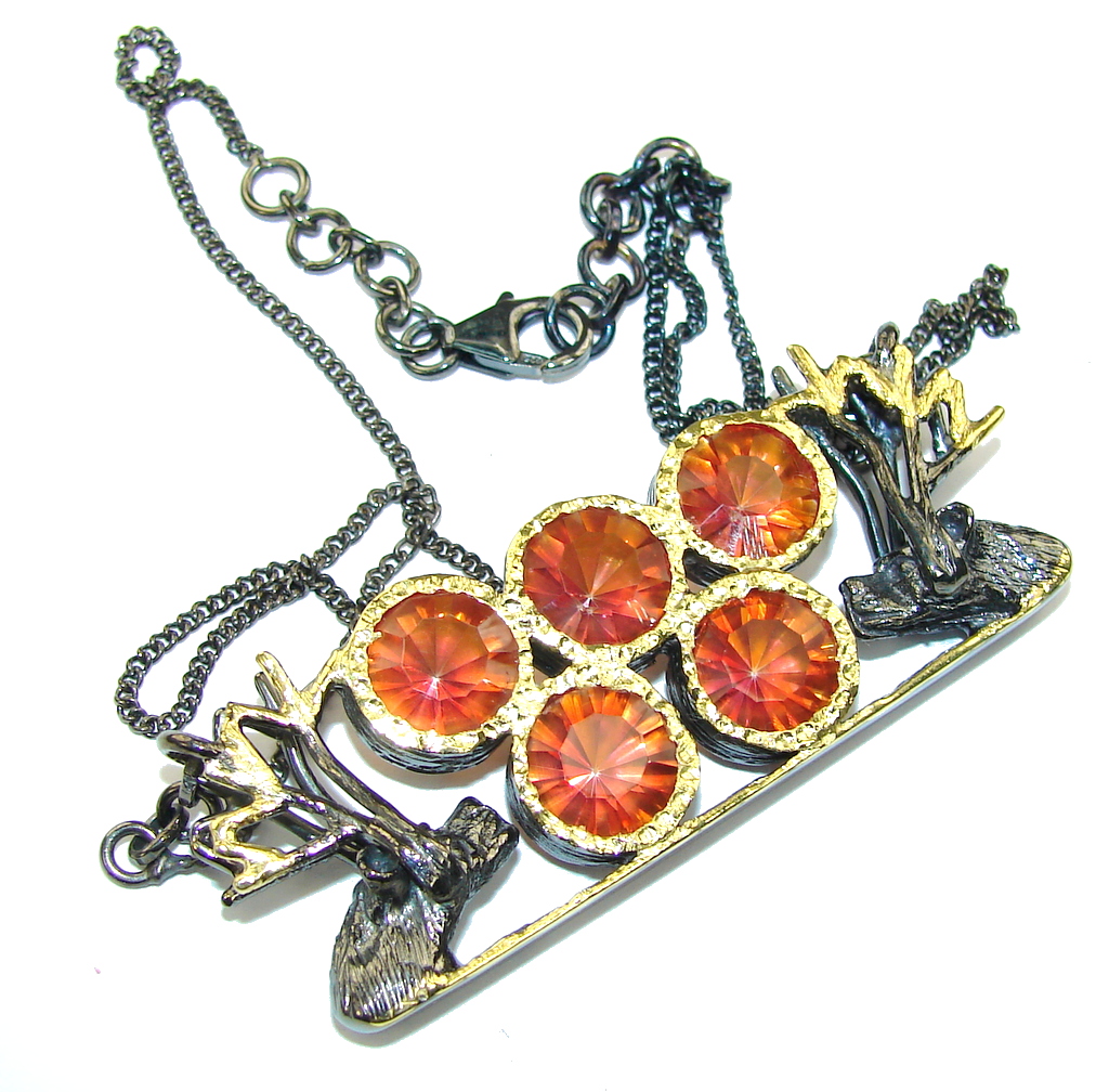 Victorian Style 5 Red Stars Sterling Silver necklace