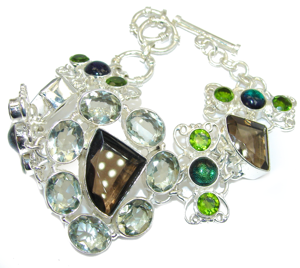 Aura Of Beauty Genuine Multigem Sterling Silver Bracelet