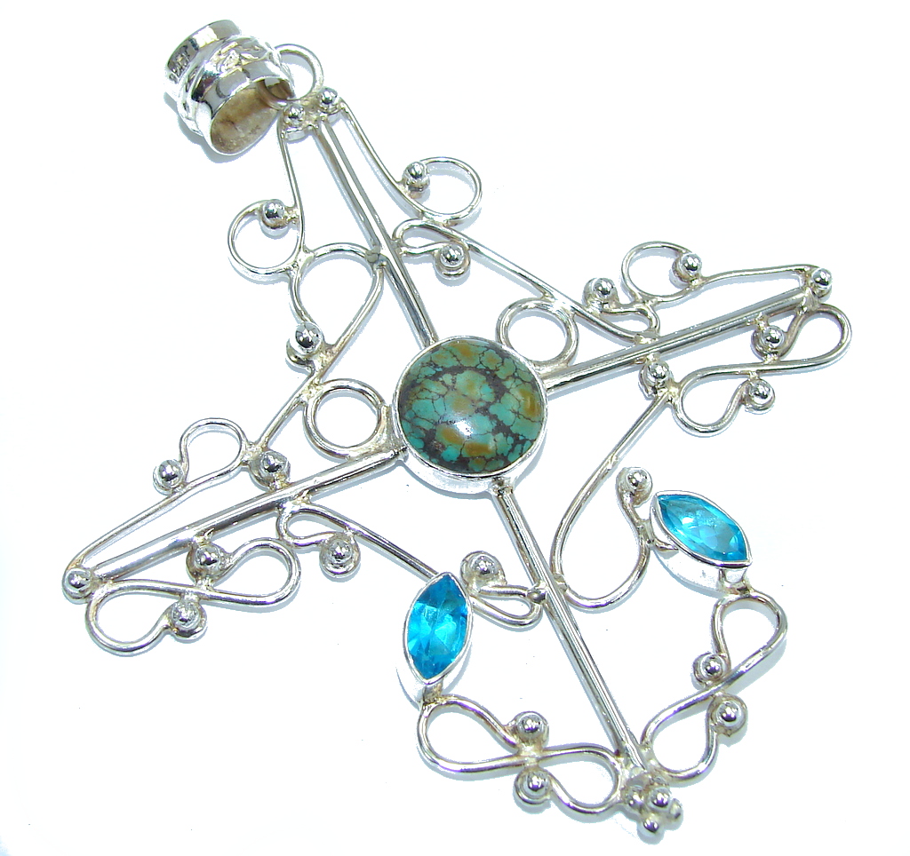 Large Unusual Green Turquoise Sterling Silver Pendant