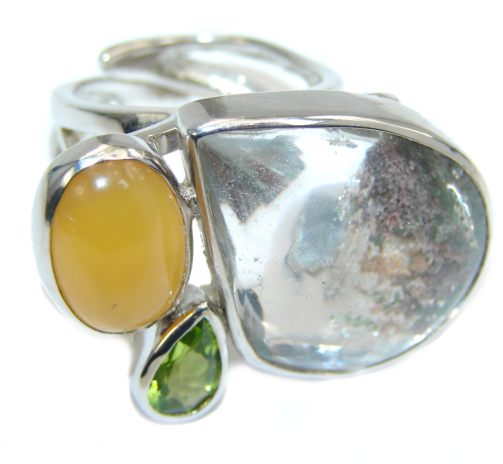 Uncommon Clrear Sandstone Sterling Silver ring s. 7 adjustable