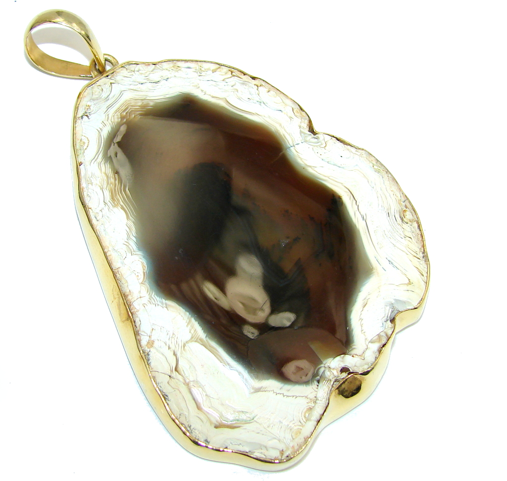 Jumbo Stunning AAA Agate Slab Gold Plated Sterling Silver Pendant