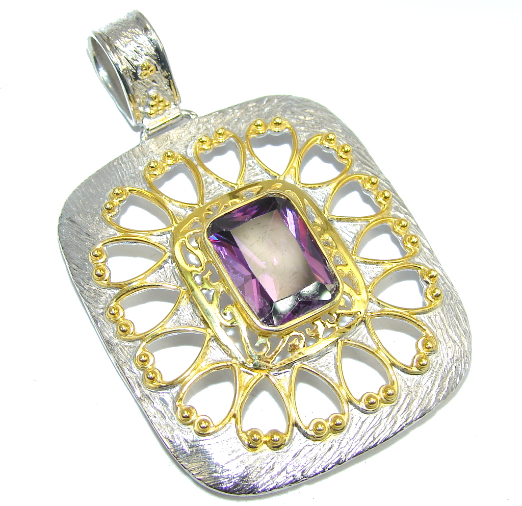 Purple Alexandrite Quartz Two Tones Sterling Silver Pendant