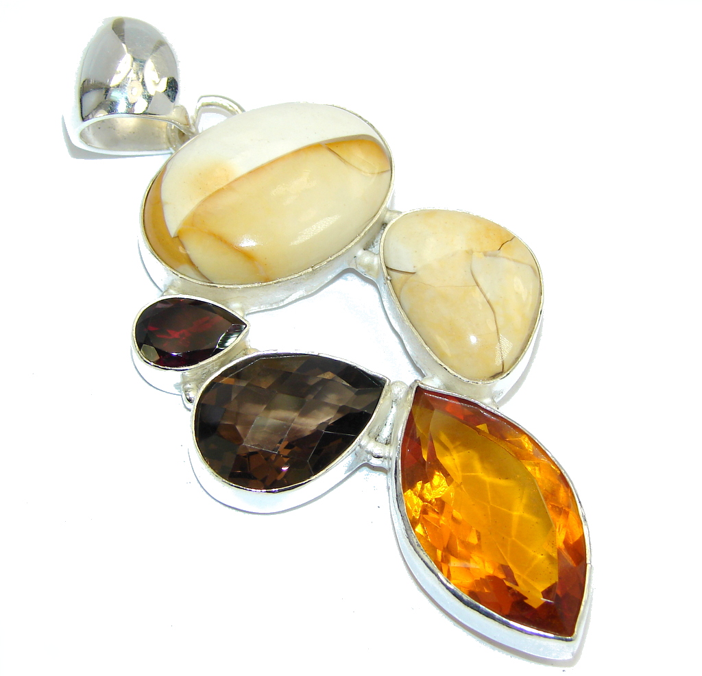 Large! Stylish Burro Creek Jasper Sterling Silver Pendant