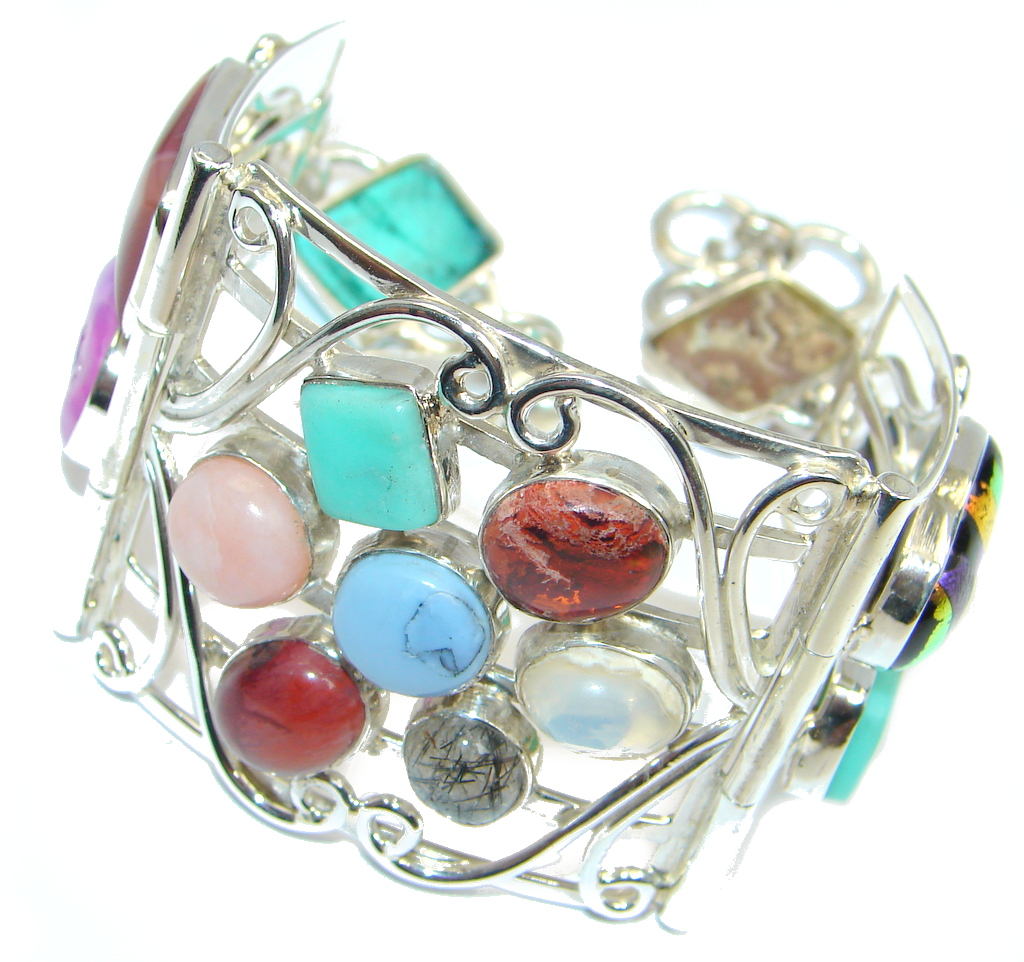 Huge Gift of Nature Multistone Sterling Silver handcrafted Bracelet