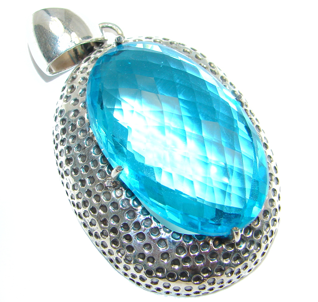 Huge Vintage Style created Blue Quartz Sterling Silver Pendant