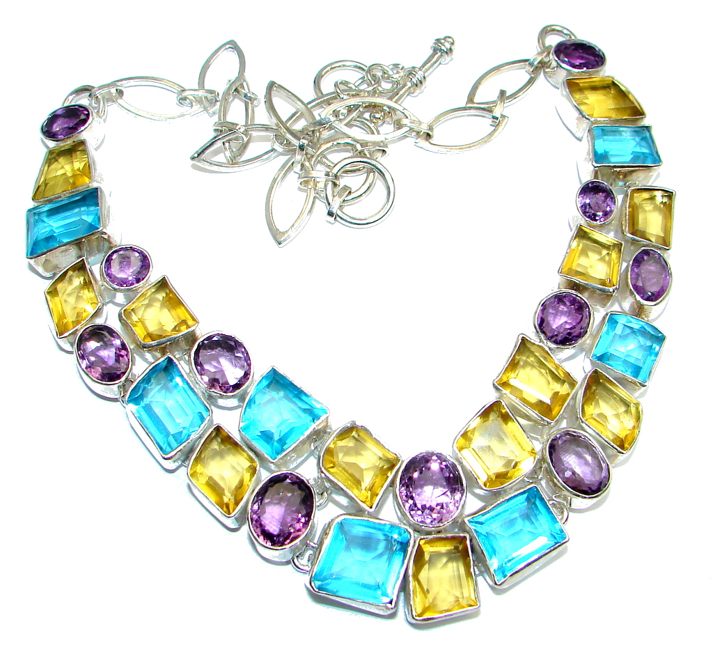 Chunky Exclusive simulated Stones Sterling Silver handmade Necklace