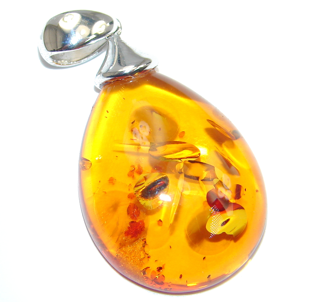 Incredible natural Baltic Amber Sterling Silver handmade Pendant