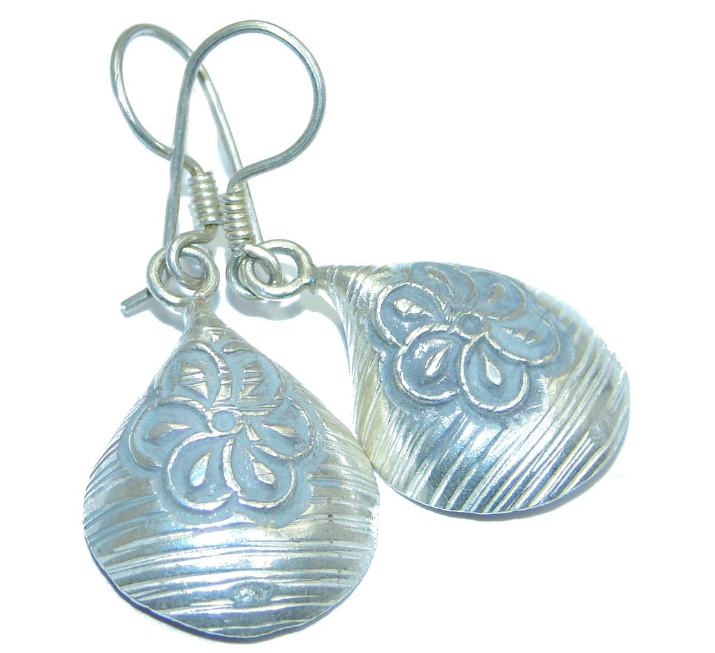 Huge Scratch Finish Sterling Silver Italy made hook Earrings