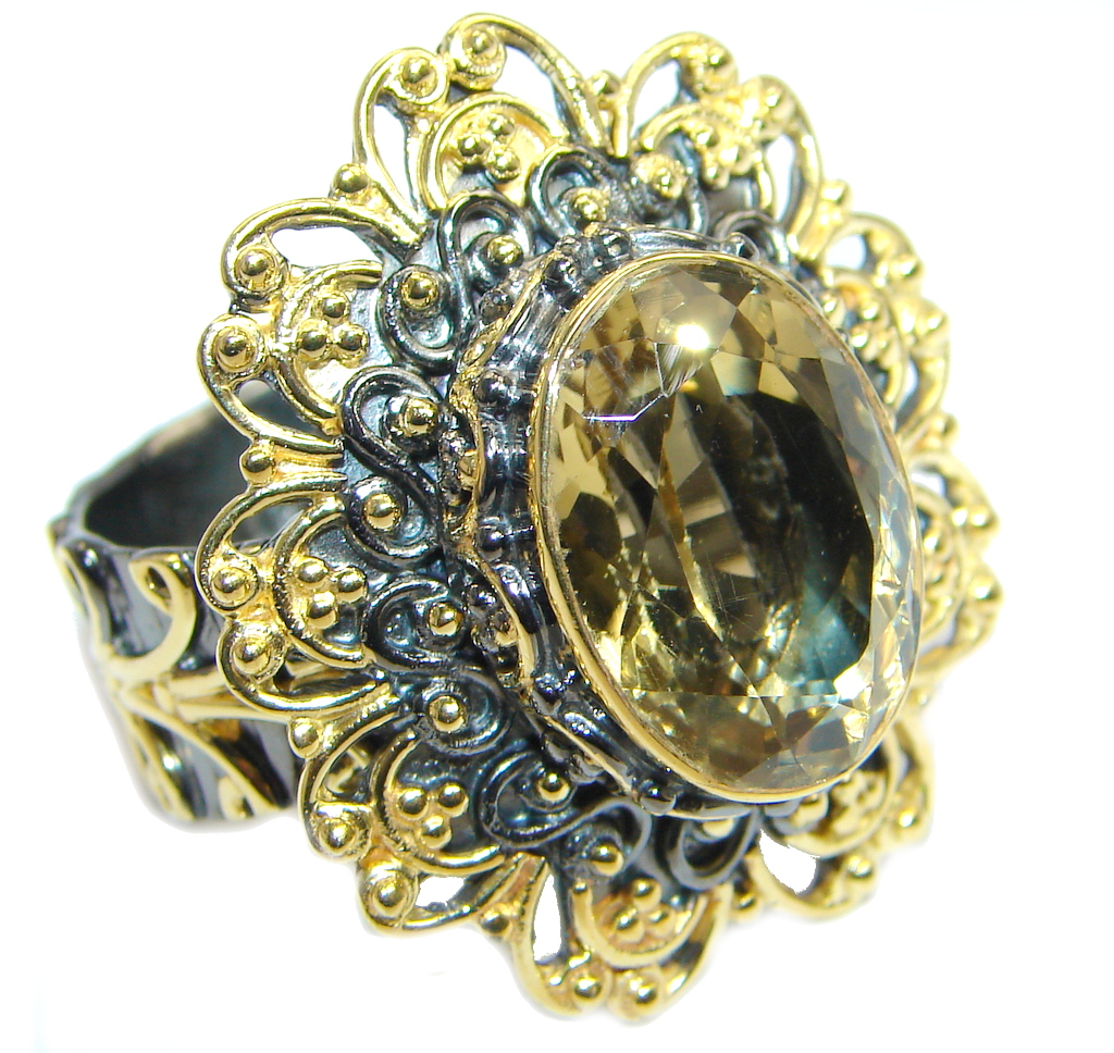 Natural Citrine Rhodium Gold plated over Sterling Silver ring size adjustable