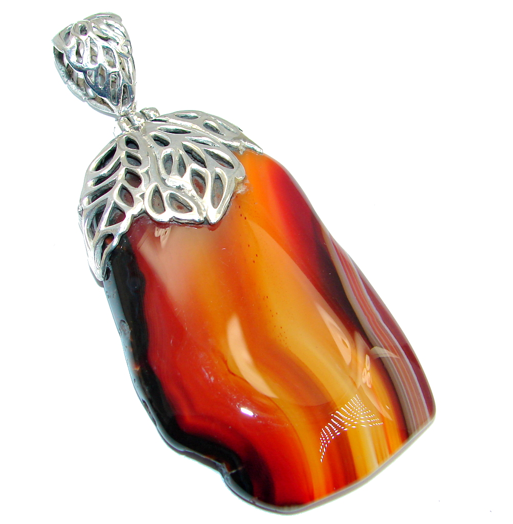 Orange Aura Botswana Agate Sterling Silver handmade Pendant