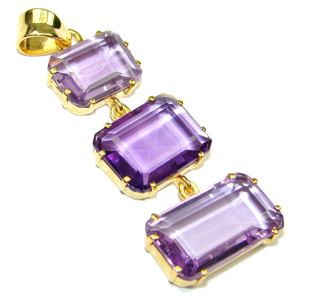 Beautiful! Amethyst Quartz , 18K Gold Plated Sterling Silver Pendant