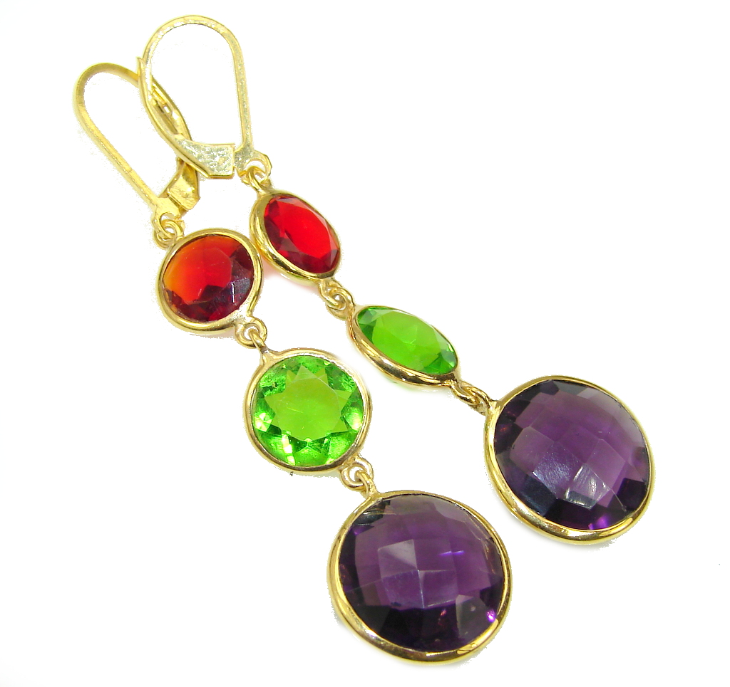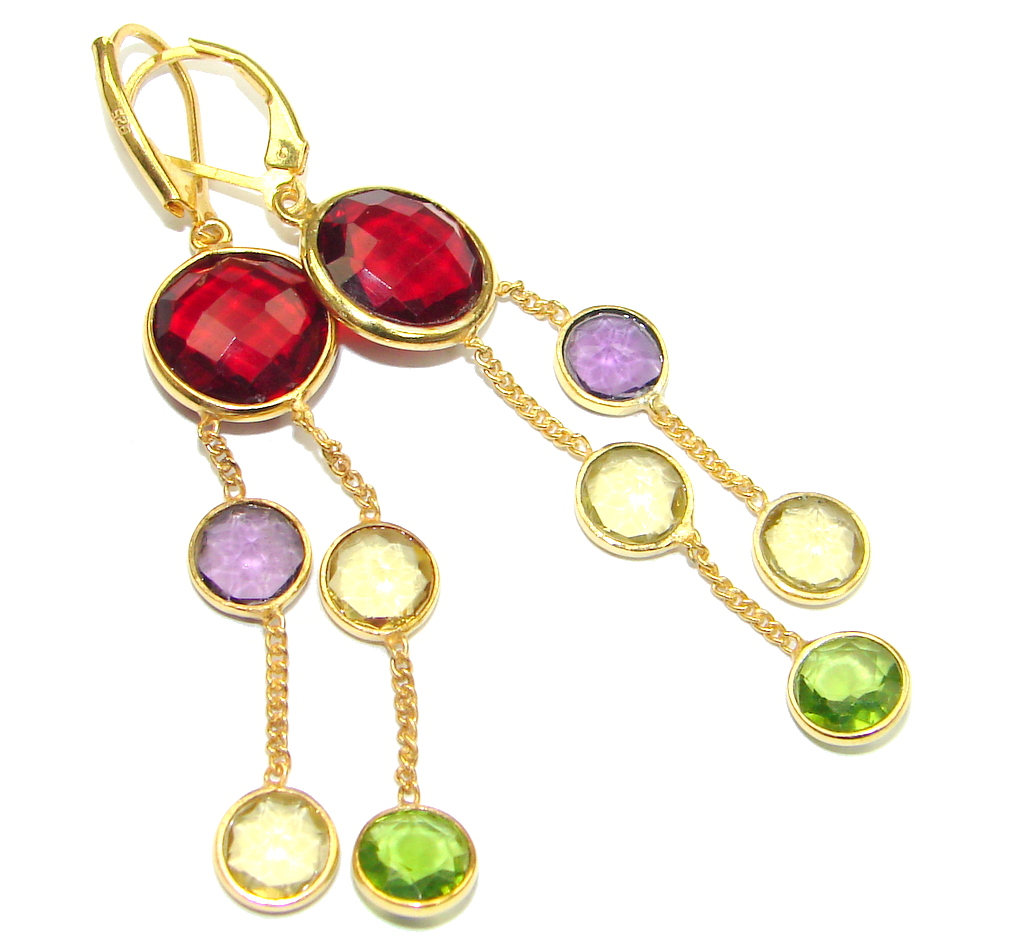 Perfect Gift! Multicolor Quartz, 18K Gold Plated Sterling Silver earrings / Long
