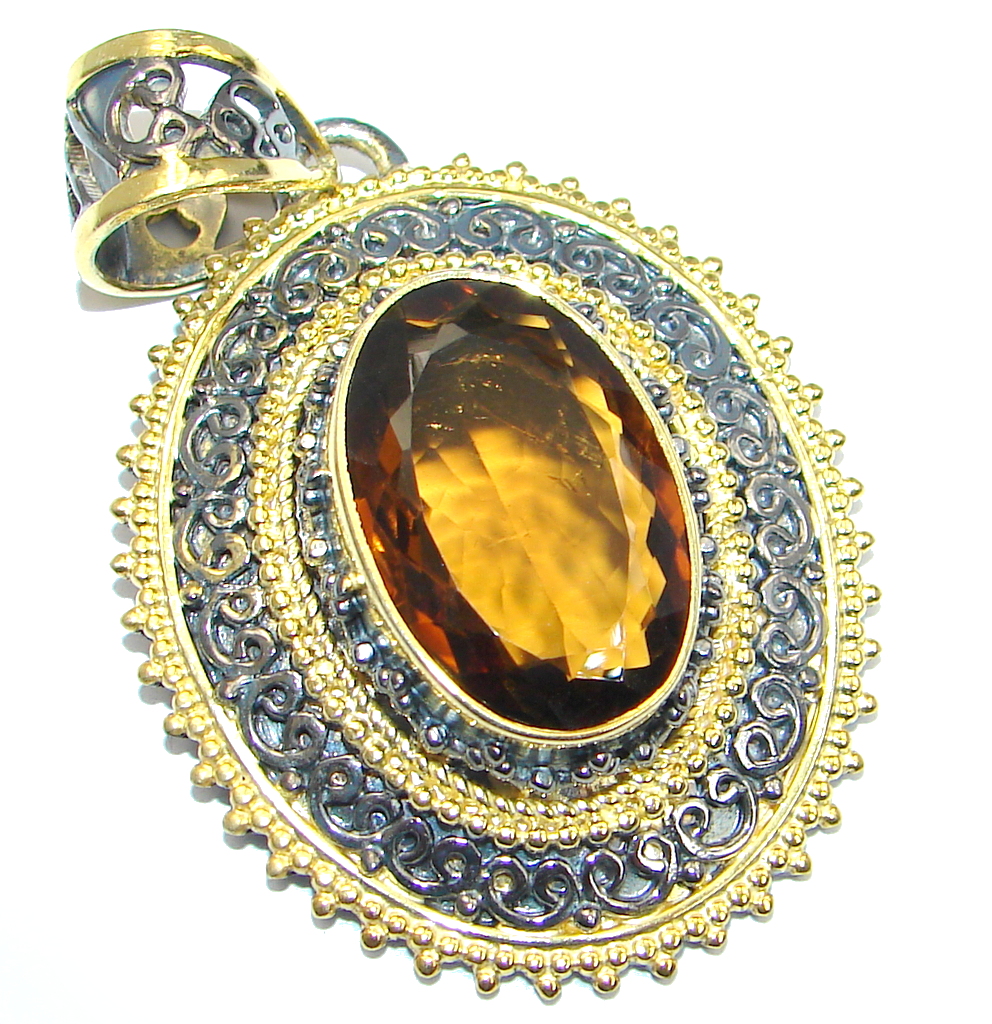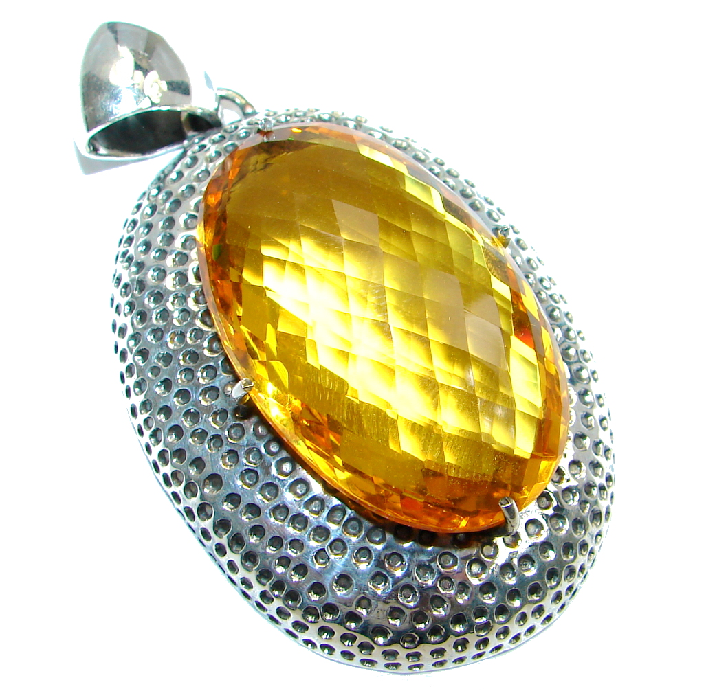 Huge Vintage Style created Yellow Quartz Sterling Silver Pendant