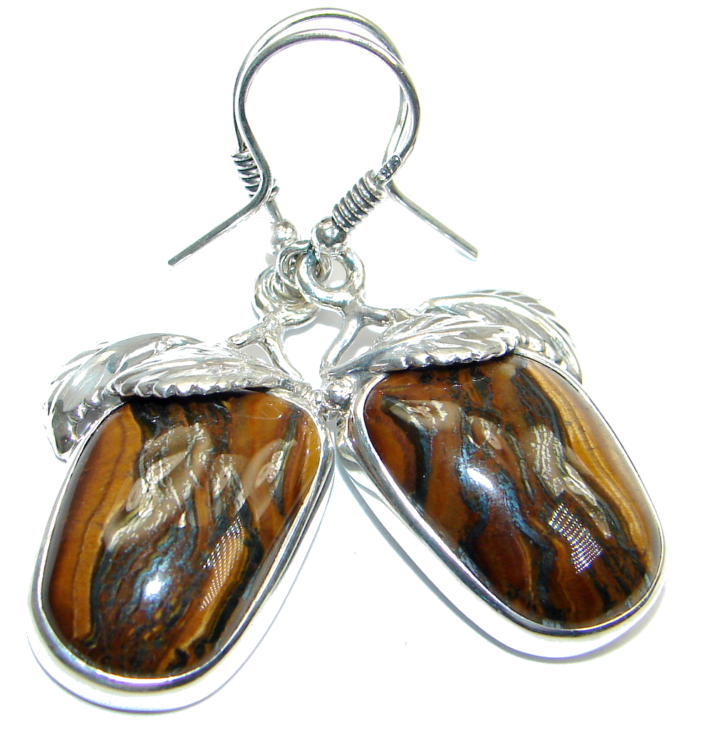 Big Vintage Setting Golden Tigers Eye Sterling Silver handmade Earrings