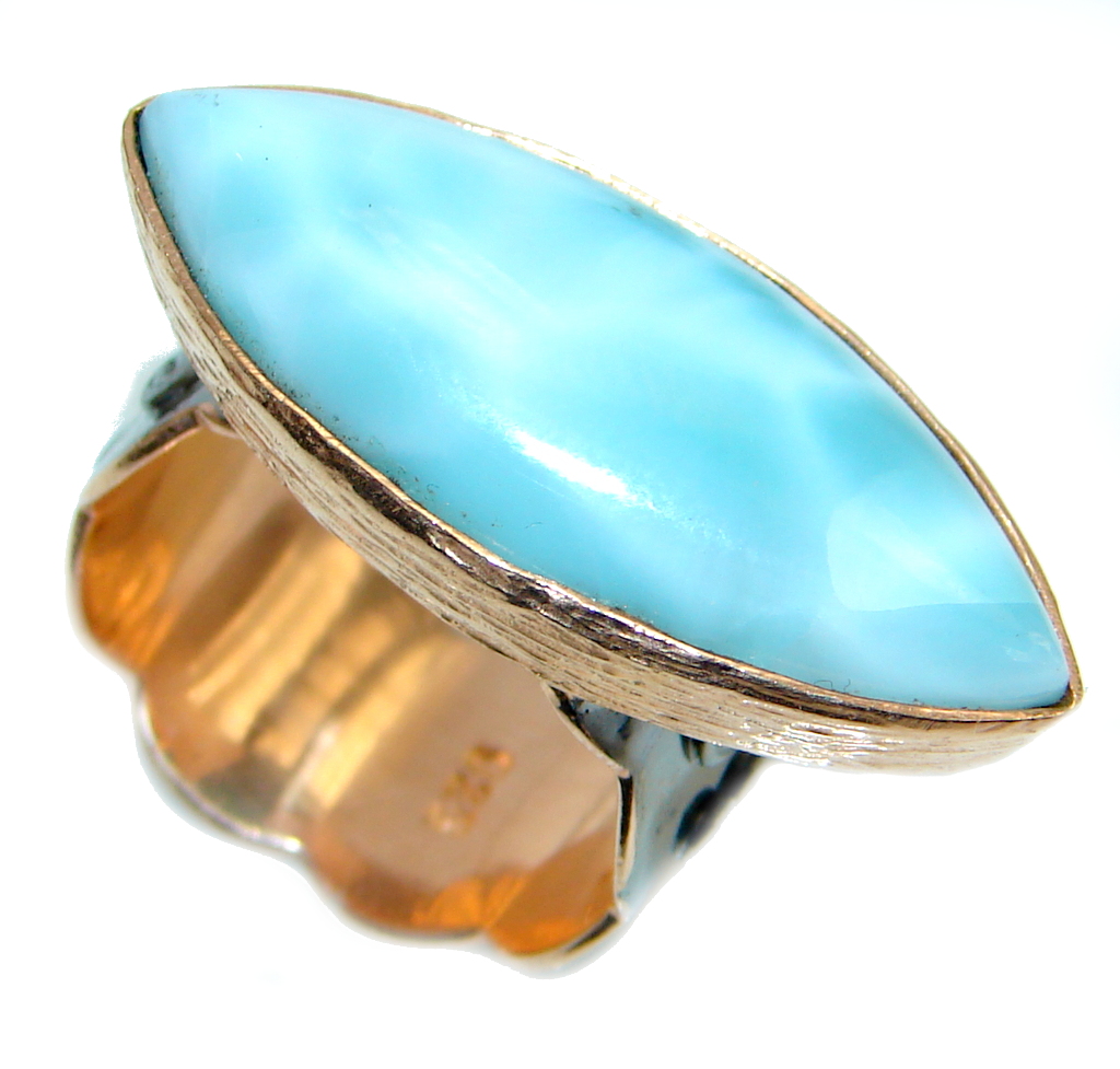 Natural Blue Larimar Gold plated over Sterling Silver handmade rind size adjustable